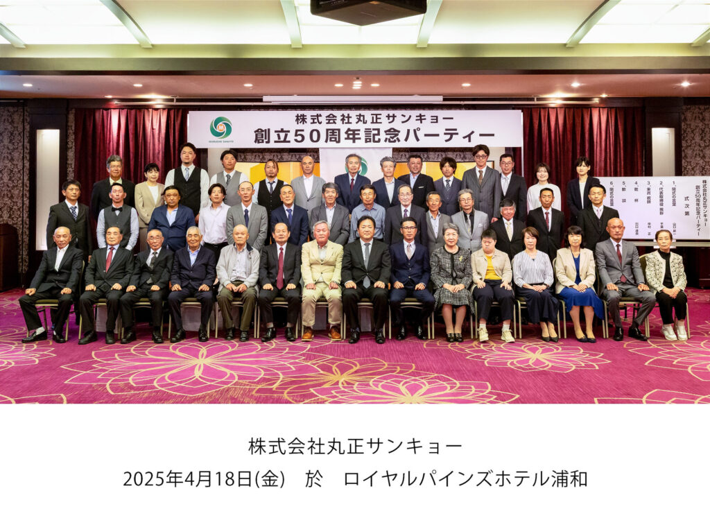 令和7年4月18日にロイヤルパインズホテル浦和さんにて、創立50周年記念パーティーが開催されました。社員とOBの方との久しぶりの再会の場となり、とてもなごやかな式典となりました。参加いただいたOBの皆さま、ありがとうございました。これからも1年1年を大切に、社員みんなで力を合わせて『より良いモノ造り』をモットーに励んでいきます!