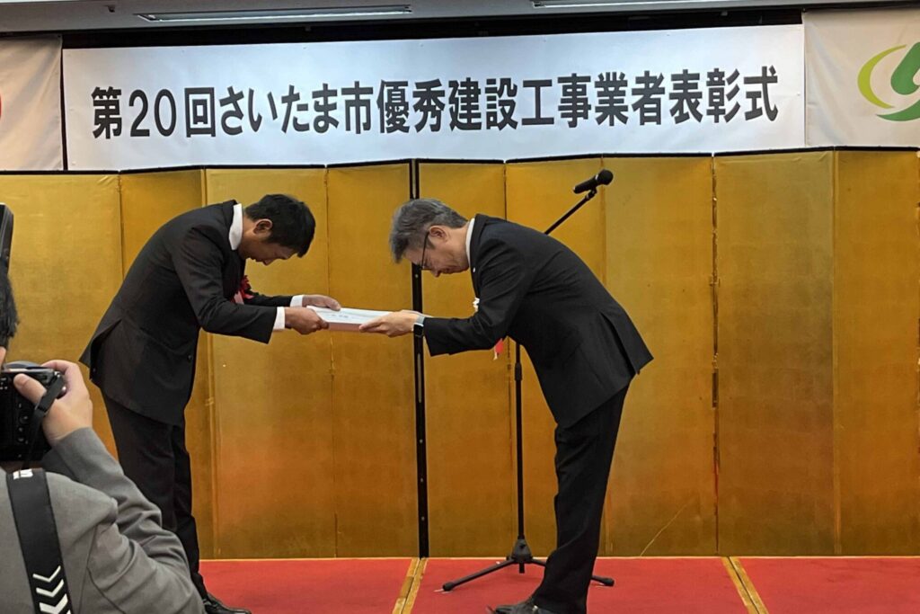 第20回さいたま市優秀建設工事業者並びに優秀代理人表彰受賞